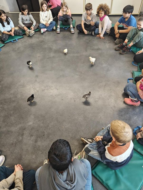 Am Dienstag gingen wir in die Inatura. Wir mussten kurz warten und dann begrüßte uns eine sehr liebe Frau. Sie ging mit uns in ein Klassenzimmer. Dort erzählte sie uns viele spannende Dinge über Hühner. Es war sehr spannend. Sie erzählte uns, dass vor 13 Tagen bei ihnen in der Inatura Küken geschlüpft seien. Daraufhin hat sie 5 Küken geholt und zu uns gebracht. Wir durften die Küken halten. Die waren sooooo süß und noch sehr flauschig! Manchen Küken ist auch ein Missgeschick passiert, aber das war witzig. Als die Frau die Küken dann wieder zu ihren Geschwistern brachte, durften wir noch eine Runde in der Inatura drehen. Das war ein toller Ausflug!