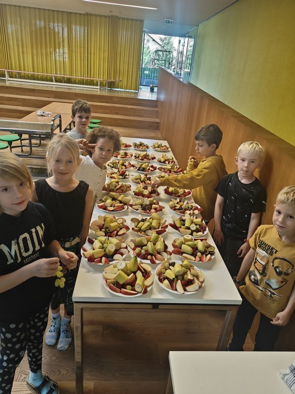Am Freitag durfte die 2c das erste Mal die gesunde Jause für die anderen Kinder herrichten. Die Kinder konnten es kaum erwarten loszulegen. Es wurden Brote gestrichen und ganz viel Obst geschnitten. Auch das schöne Anrichten der Teller, war ein sehr wichtiger Punkt für die Kinder. Es machte großen Spaß und wir freuen uns schon auf das nächste Mal.