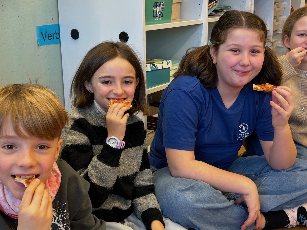 Das war sehr anschaulich und hat Spaß gemacht. Das Beste war jedoch, dass wir die Bruchteile der Pizza am Ende aufessen durften - lecker! Solche Mathestunden wünschen wir uns noch öfter!