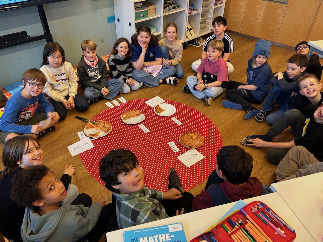 Am Zeugnistag haben sich unsere Lehrerinnen etwas Tolles überlegt. Mit Pizza haben wir gelernt, was Bruchzahlen sind, Halbe, Viertel und Achtel, Nenner und Zähler.